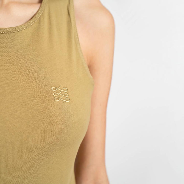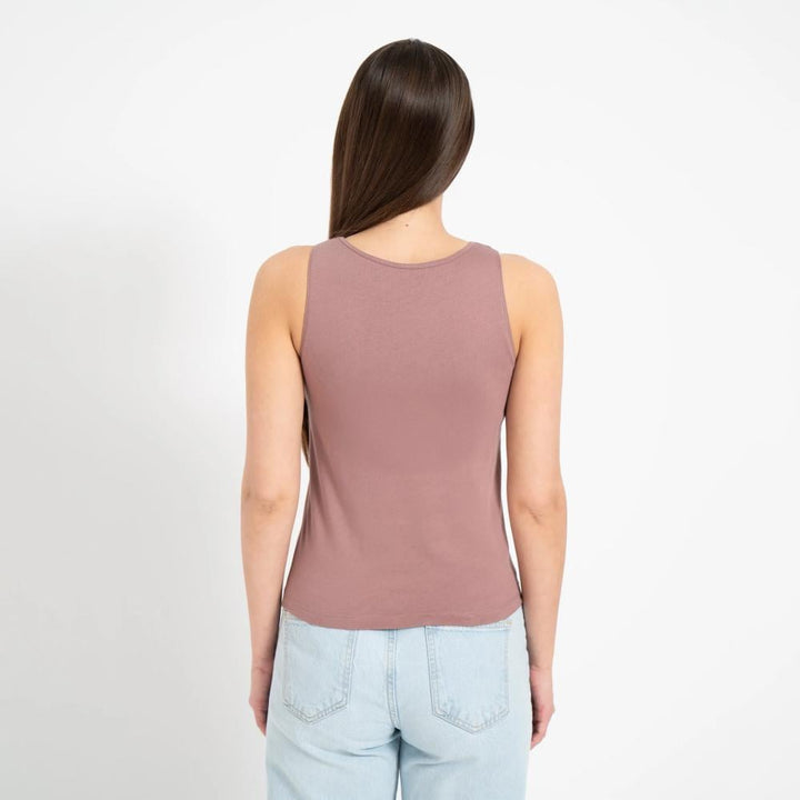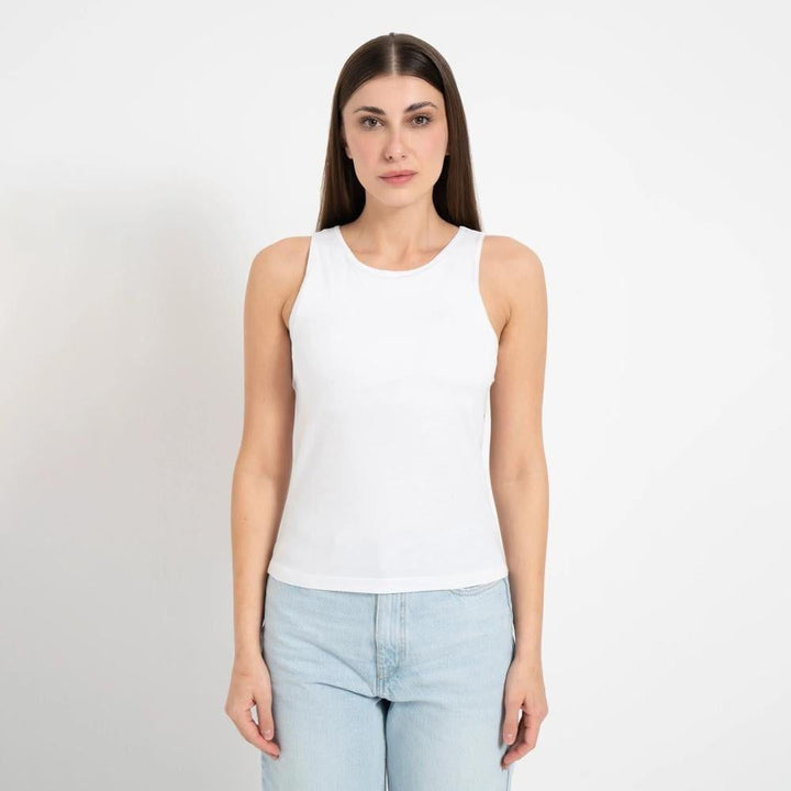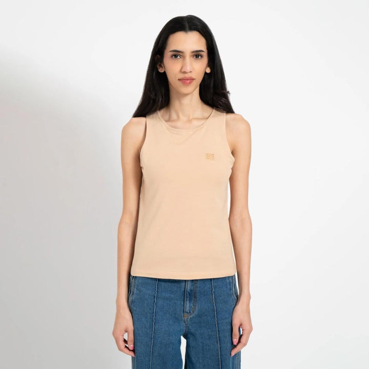 تانك توب مصنوع من قطن طبيعي 100%، يتميز بقدرته العالية على امتصاص الرطوبة وتهوية ممتازة, يتميز بقصّة مستقيمة مع حمالة صدر ملحقة. مثاليًا كقطعة أساسية أو كطبقة تحتية، ويمكن تنسيقها بطرق متعددة.